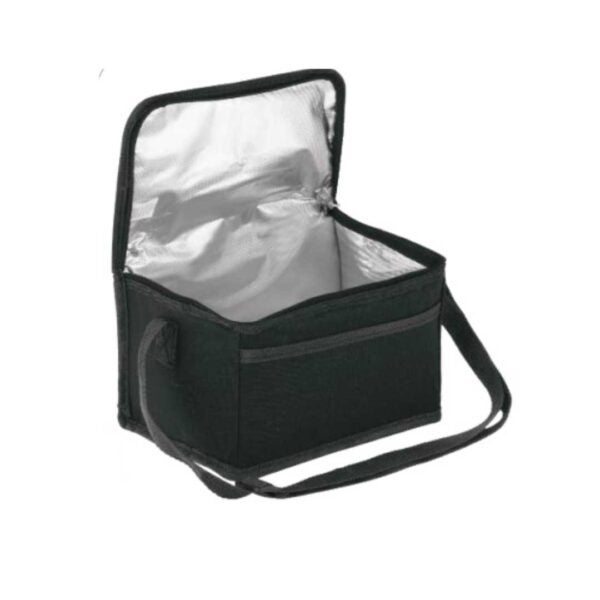 Alça ajustável para ombro, revestimento interno térmico, além de bolso traseiro externo